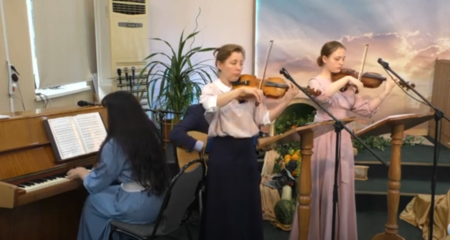 Также прозвучало благодарение Бога и за духовный урожай: Бог посылал общине в этом году духовную жатву в виде крещений четырех молодых людей. Их еще раз поздравили и вручили памятные подарки.
