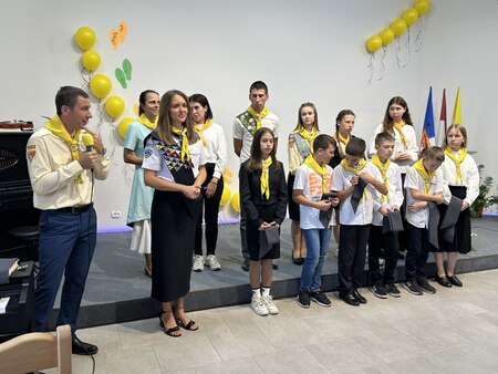 Мой супруг, служитель красносулинской общины, Денис, в течение последнего года ходил с будущими «следопытами» в походы, посещал с ними членов церкви, участвовал в челлендже со следопытским галстуком. А в сентябре состоялось открытие клуба «Старатели», где меня и моего мужа, уже взрослых, посвятили в «следопыты».