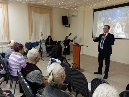 Также ведущие заострили внимание на то, что Спаситель мира родился в хлеву и что Он объявил Себя царём нищих, простых и униженных. Эту мысль раскрыл в своем духовном обращении пастор Михаил Олийник, отметив, что Иисус понимает проблемы и переживания обездоленных людей.