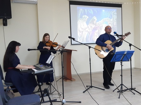 С прекрасных мелодий в исполнении инструментального ансамбля начался рождественский концерт для людей, которые сегодня испытывают особенную нужду, как в материальной, так и в моральной поддержке.