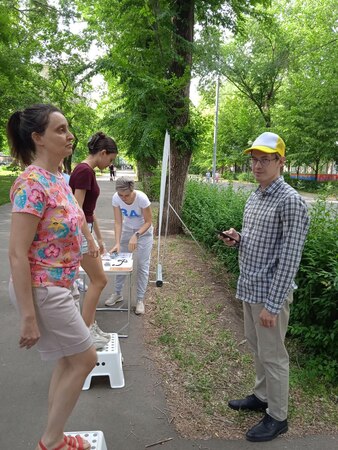 На одной из станций в формате игры было представлено, как зависимость мешает идти к цели: человек рисовал круг, а волонтеры тянули за ленточки, привязанные к его руке. Было смешно и очень наглядно.